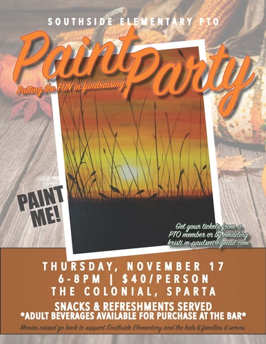 Snacks and refreshments will be served with the option for adult beverages for purchase. Monies raised go back to support Southside Elementary and the families that it serves. Help us spread the word - please share this event with your friends! Many thanks!"